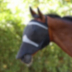 Shires FlyGuard Pro fly mask made from soft, fine mesh that protects against flies and insects while remaining breathable and comfortable for the horse. This earless model is ideal for horses that do not like their ears covered and features a full nose section for more sensitive horses.