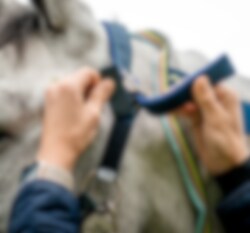 The product image shows the buckle fastening outward, but for safety reasons, Horseware has now reversed the buckle so that it fastens inward towards the horse.