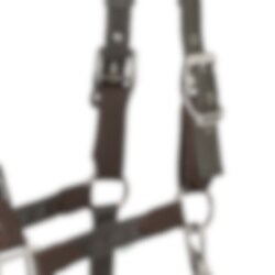 Over the neck and nose, the halter is soft lined with fleece for best comfort. The leather details at the rings are not only good looking but also a safety precaution as they should break if the horse gets stuck. The headpiece also has Velcro fastening on both sides.