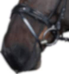 Muzzle fly net in fine black mesh netting.
