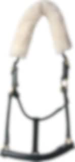 A soft comfortable sheepskin poll guard from Medilamb. Sheepskin poll guards are normally used to prevent chafing in the sensitive poll area of the horse.