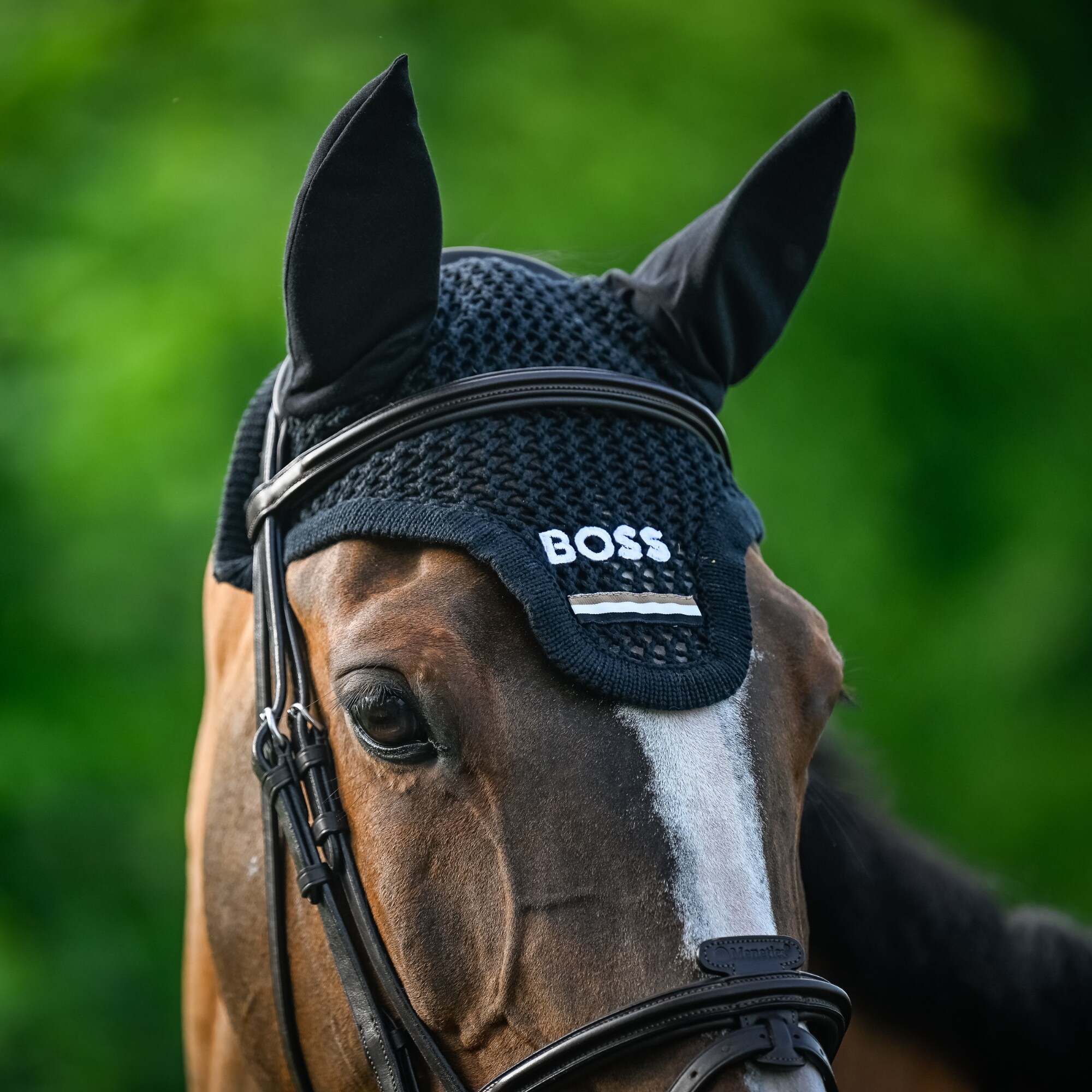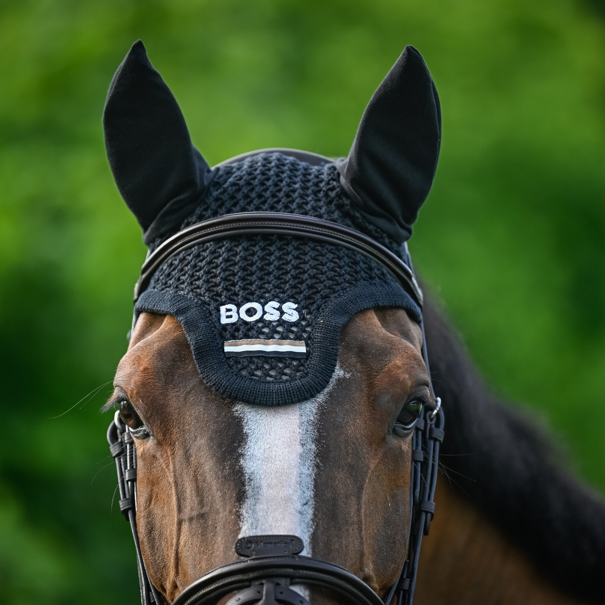 This exclusive fly veil from BOSS is the perfect solution for protecting your horse’s ears from flies and other disturbing insects during training and competition. The fly veil is made from breathable crochet knit fabric with a cotton content. The design is both classic and elegant, featuring a contrasting BOSS logo on the front and a stylish signature stripe.