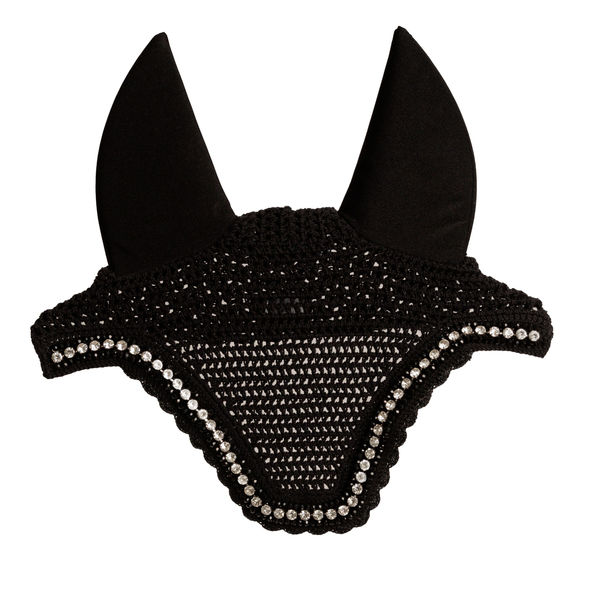 The Wellington Soundless fly bonnet is beautifully sleek while featuring elegant details in the form of stones along the edges. The stones are arranged in three rows, with smaller black stones on the outer and inner edges and larger transparent stones in the centre. Along the edges, there are also stunning details made from slightly glittery black fabric. In other words, this is the perfect fly bonnet for anyone who truly wants to stand out!