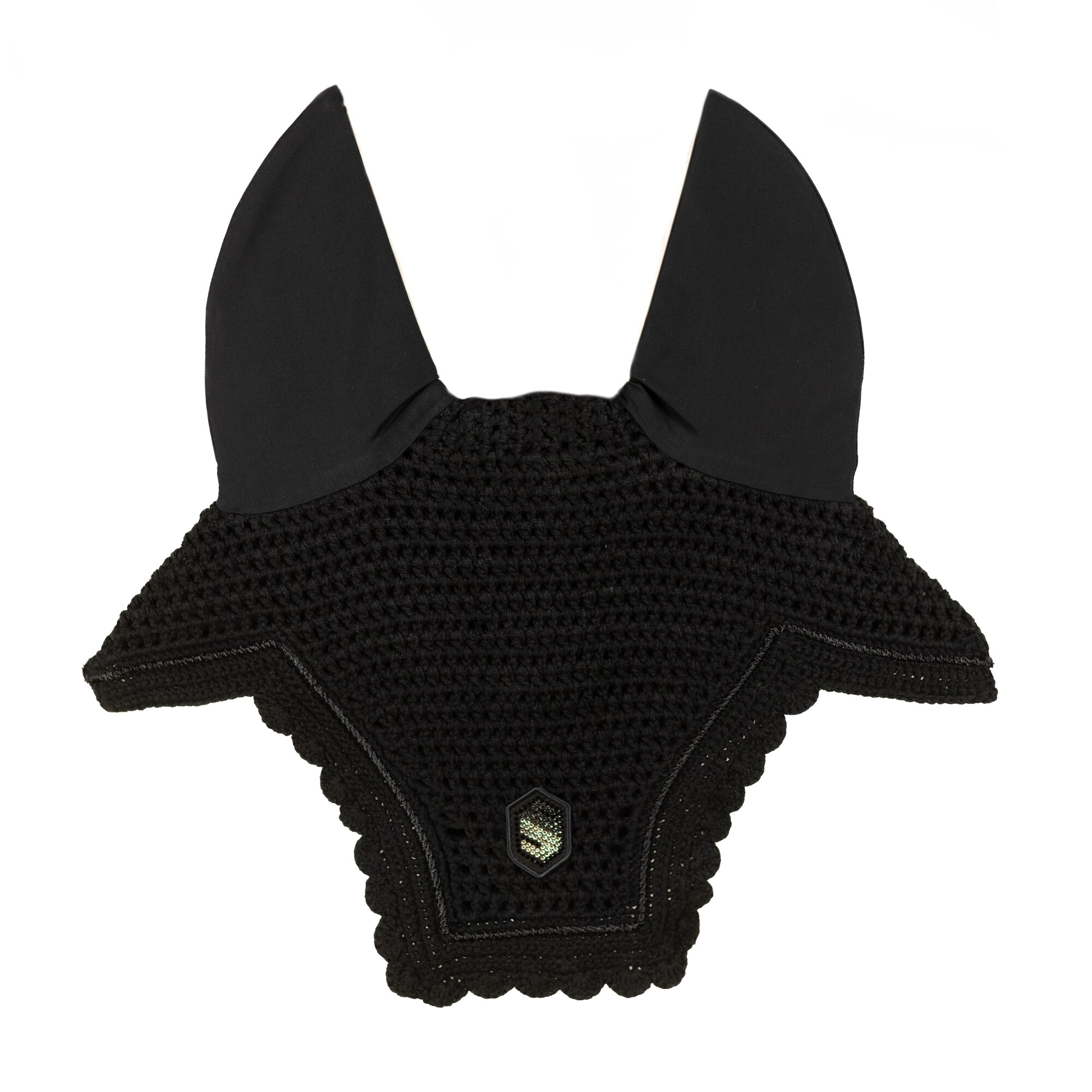 The lightweight, micro-perforated fabric promotes ventilation around the ears and reduces irritation from insects, while also contributing to reduced noise. The bonnet is decorated with the Samshield logo adorned with Swarovski crystals on the front, adding a sophisticated, luxurious touch. For a coordinated and technically elegant competition look, the bonnet can be paired with the Samshield Spineshield saddle pad.