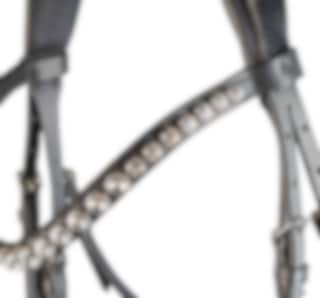 Bridle Genius is made of flat leather and has the fantastically beautiful Focus browband. The browband is bow-shaped with large Swarovski crystals in different sizes. At the very edges are the smaller stones of 8 mm, then 10 mm and in the mddle the stones in 12 mm are placed. This distribution makes OS Focus unique and something that stands out in the crowd!