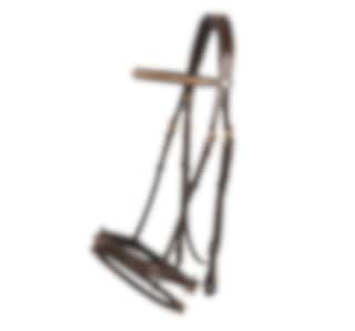 Bridle Basic Preston Fancy has an anatomically shaped neck piece and a softly lined noseband with decorative stitching. The headband is straight and decorated with real brass clinchers. The bridle's aachen strap are removable.