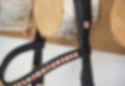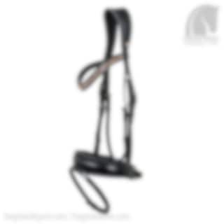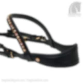 This is a fantastically fine and exclusive black bridle with rose-colored buckles from the well-known Otto Schumacher. This bridle is in the model Tokyo which has a wider, well padded neck piece which means it has a softer fit against the horse's neck.