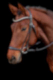 Elegant remont bridle with lined remont nose halter that is 35 mm wide at the widest point and has a pad that protects the buckle under the jaw. The noseband has buckles on both sides to adapt to the softly padded anatomical neck piece, the side rings on the noseband position the drop noseband perfectly at 90 degrees. The browband on this remont bridle has a quick snap on, so it can easily be replaced if you prefer another option.