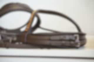 This is a brown München Feel Good round-sewn bridle with the slightly wider, well-padded neck piece, which is specifically named Feel Good because it has a softer fit against the horse's neck. The noseband on this round-sewd bridle is 4.5 cm wide in the Cut back model, which means that the noseband is cut back and narrows at the sides where the horse has the least space at the bit, the closure of the noseband is buttoned back.
