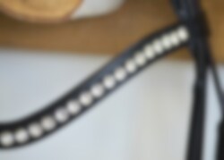 The beautiful bow-shaped browband is decorated with Tiffany XL 8 mm large genuine Swarovski stones in the color Clear Crystal.