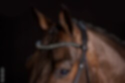 The noseband on this bridle is extra wide with tapered curved sides that expose the cheekbones while the shape reduces the risk of pinch injuries between bit and noseband, closes with pullback.