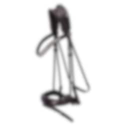 The noseband on this bridle is extra wide with tapered curved sides that expose the cheekbones while the shape reduces the risk of pinch injuries between bit and noseband, closes with pullback.