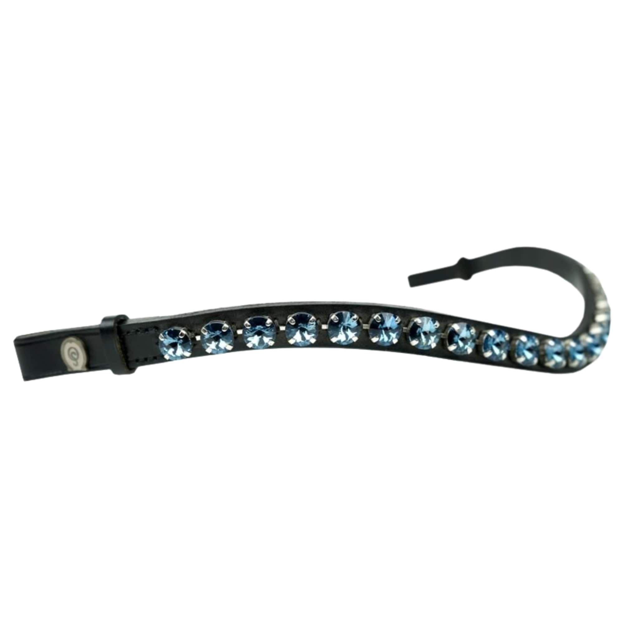 Exclusive brown browband from Otto Schumacher, handcrafted in Germany and adorned with 10 mm Swarovski® crystals in the shade Denim Blue.