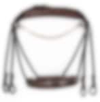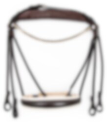 An anatomical and round sewn double bridle with a unique headpiece that prevents pressure and muscle damage in the horse's neck muscles. The double bridle is fitted with a thin browband with stylish clincher in brass.