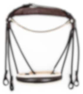 Finesse Bridle has a completely different headpiece design compared to other bridles on the market, the crownpiece of their bridles and double-bridles is designed to spread and reduce the pressure on the horse's neck.