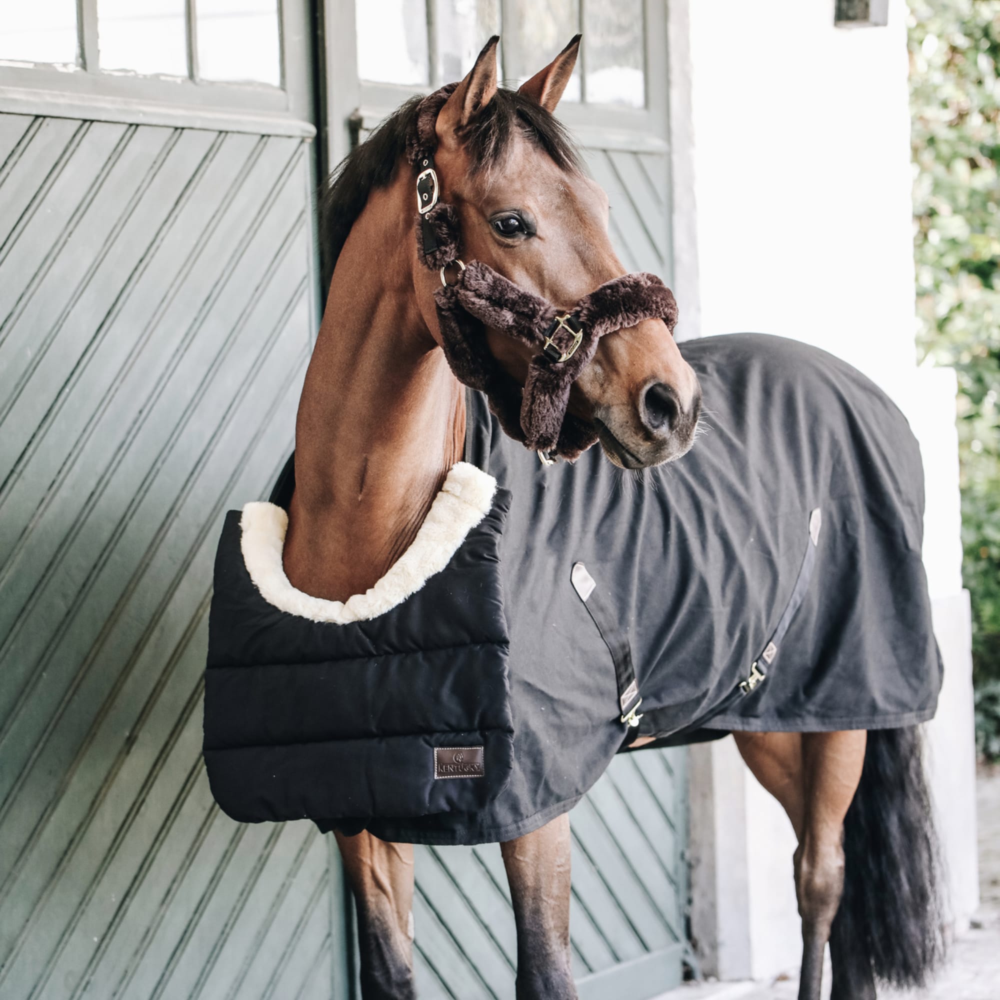 The Kentucky Winter BIB in black is a practical chest protector that prevents rubbing on the horse’s chest caused by rugs.