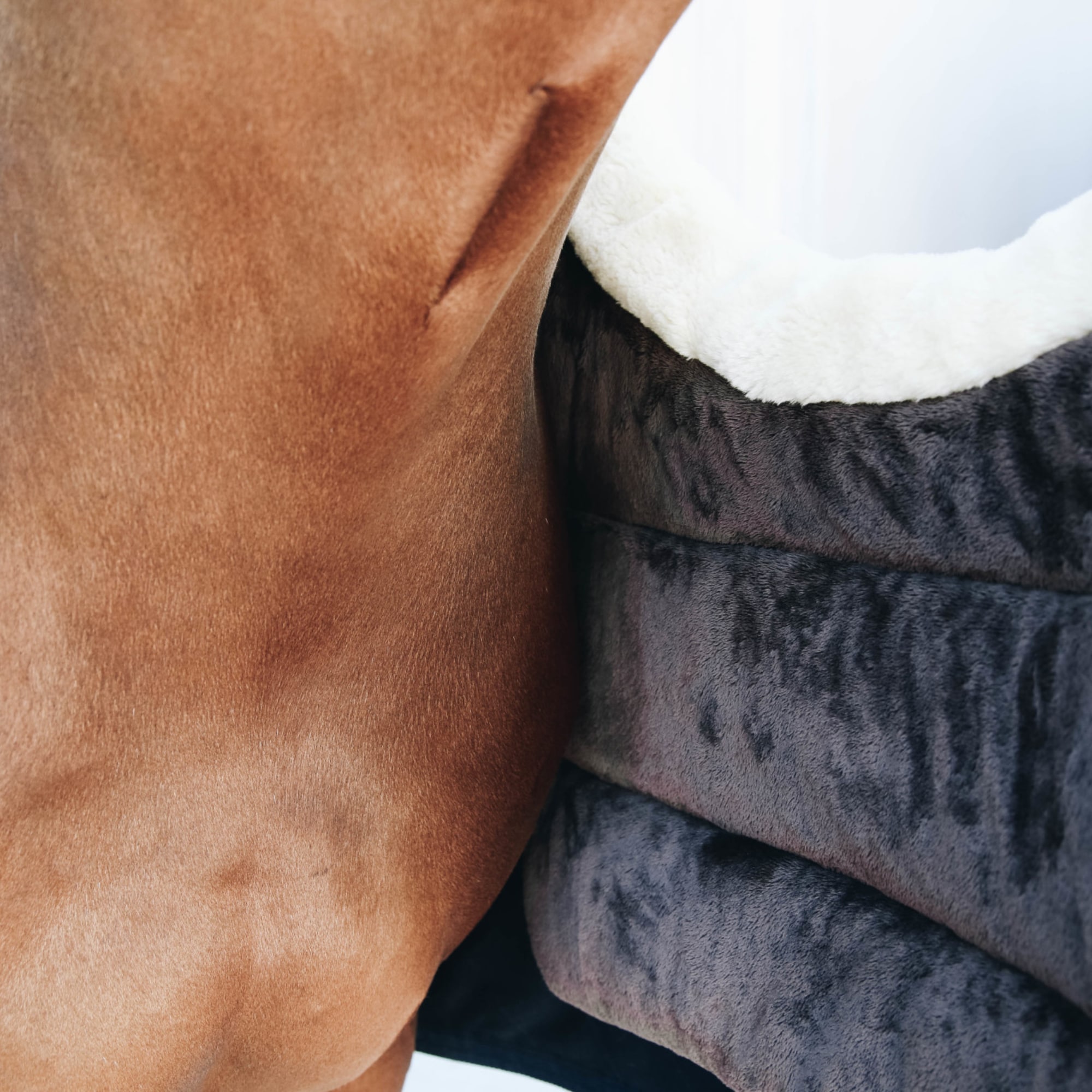 The bib is lined with Kentucky’s unique artificial rabbit skin, a soft and gentle material that prevents rubbing and provides extra comfort. The outer fabric of 100% brushed polyester evenly distributes the pressure from the rug across the horse’s chest, increasing both comfort and protection.