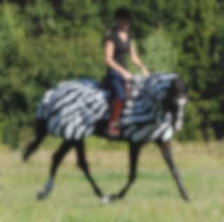 This zebra patterned riding rug is very popular as it helps reduce the number of irritating flies on the horse. Buzz-Off Riding Zebra is a lightweight two part riding rug with a removable neck cover that allows for different levels of protection. This fly rug not only protects the horse against flies but also provides UV protection.