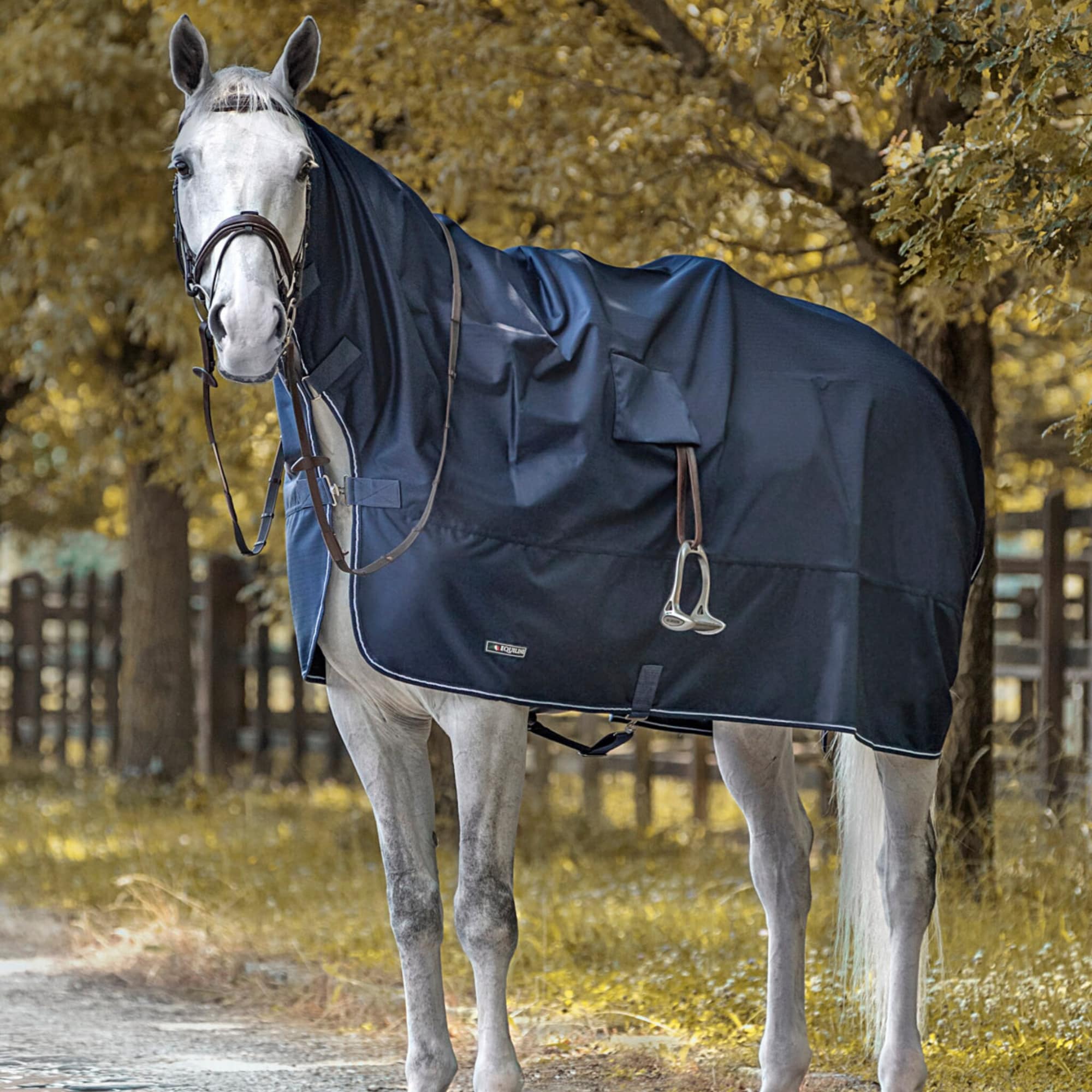 Its smart design shields both the horse and tack from rain, while the integrated openings allow for easy passage of the stirrups.