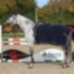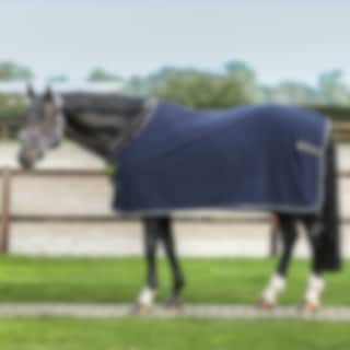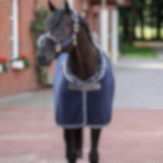 This fleece rug with 600 grams of fleece is ideal for colder periods. The quilt is navy blue with an elegant faux fur collar and contrasting grey piping, this allows you to match the fleecerug with other products in Buca's Show-Line collection.