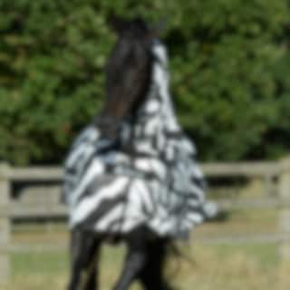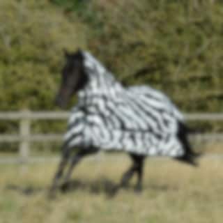 Zebra-patterned fly rug with a detachable neck and belly pad from Bucas.