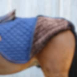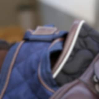 The rug attaches easily in front of the saddle with a strong Velcro fastening and is kept in place with a tail strap. The classic cut covers the loins and back without interfering with leg aids. The elegant design with diamond quilting, faux leather details and the Kentucky logo gives an exclusive look suitable for both training and competition.