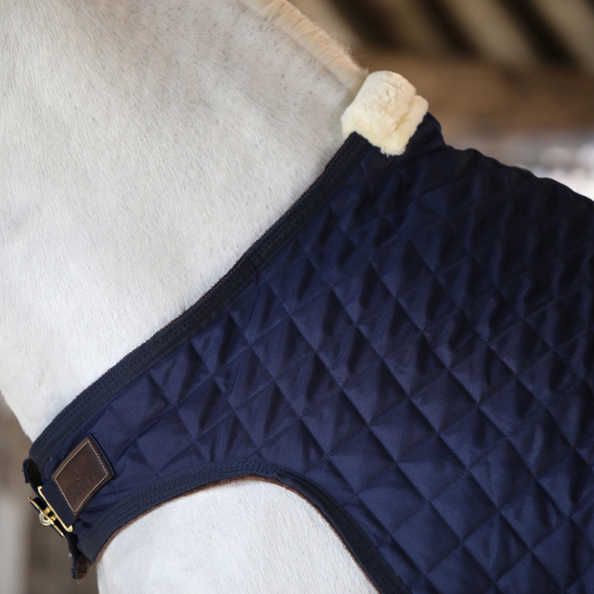 With 160 g filling and a luxurious faux fur (artificial rabbit skin) lining, the rug keeps your horse warm while providing comfort and preventing rubbing.