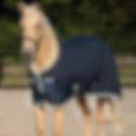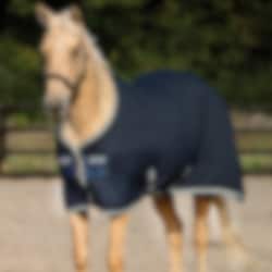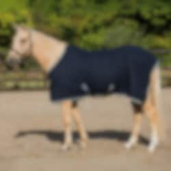 Navy cooler rug that efficiently wicks moisture away from Horsewar