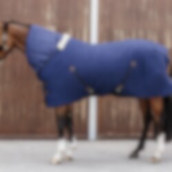 Horse Duvet from Kentucky is a 300gr lined rectangular blanket with filling that breathes and keeps the horse warm in the stable when it is cold. The duvet has no straps or buckles but can be used with an elasticated surcingle under a stable rug when you need to put under another heat-isolated blanket. The fiber filling on Horse Duvet is made in multiple layers which makes it possible for the air to circulate in the blanket and in that way keep the horse warm. The filling in this duvet has one additional capacity, that is does not absorb any smell.  200 x 180 cm