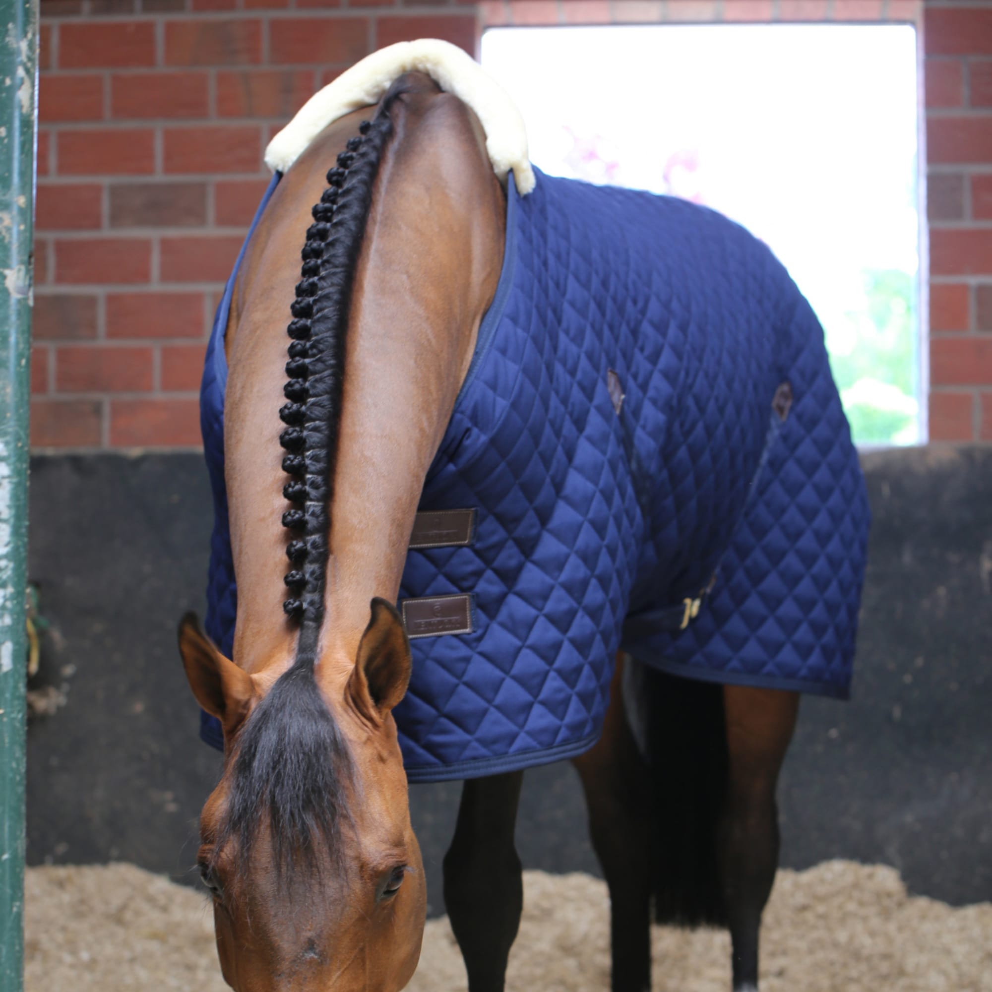 Navy warming stable rug with Kentucky’s ultra-soft faux fur lining!