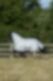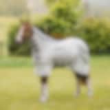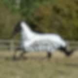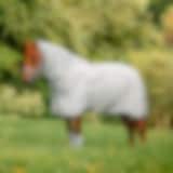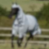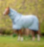 Häst med grått flugtäcke av modell Buzz-Off X med hals från Bucas.