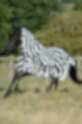 Buzz-off & neck Zebra is a zebra-colored fly rug that is designed to protect your horse to the maximum from stinging and biting insects. The zebra pattern is developed to confuse annoying insects that due to the black / white pattern can not land on the horse. At the inside by the shoulders, the fly rug has a silky lining to prevent chafing and the upper part of the tail is covered by a tail patch. The neck is removable, which means you can choose to wear it on or off.