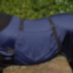 The fixed neck section and wide belly flap provide excellent coverage over the areas where sweet itch most commonly occurs. Elastic inserts at the shoulder and at the base of the neck allow good freedom of movement and help the rug sit comfortably even when the horse is moving in the field.