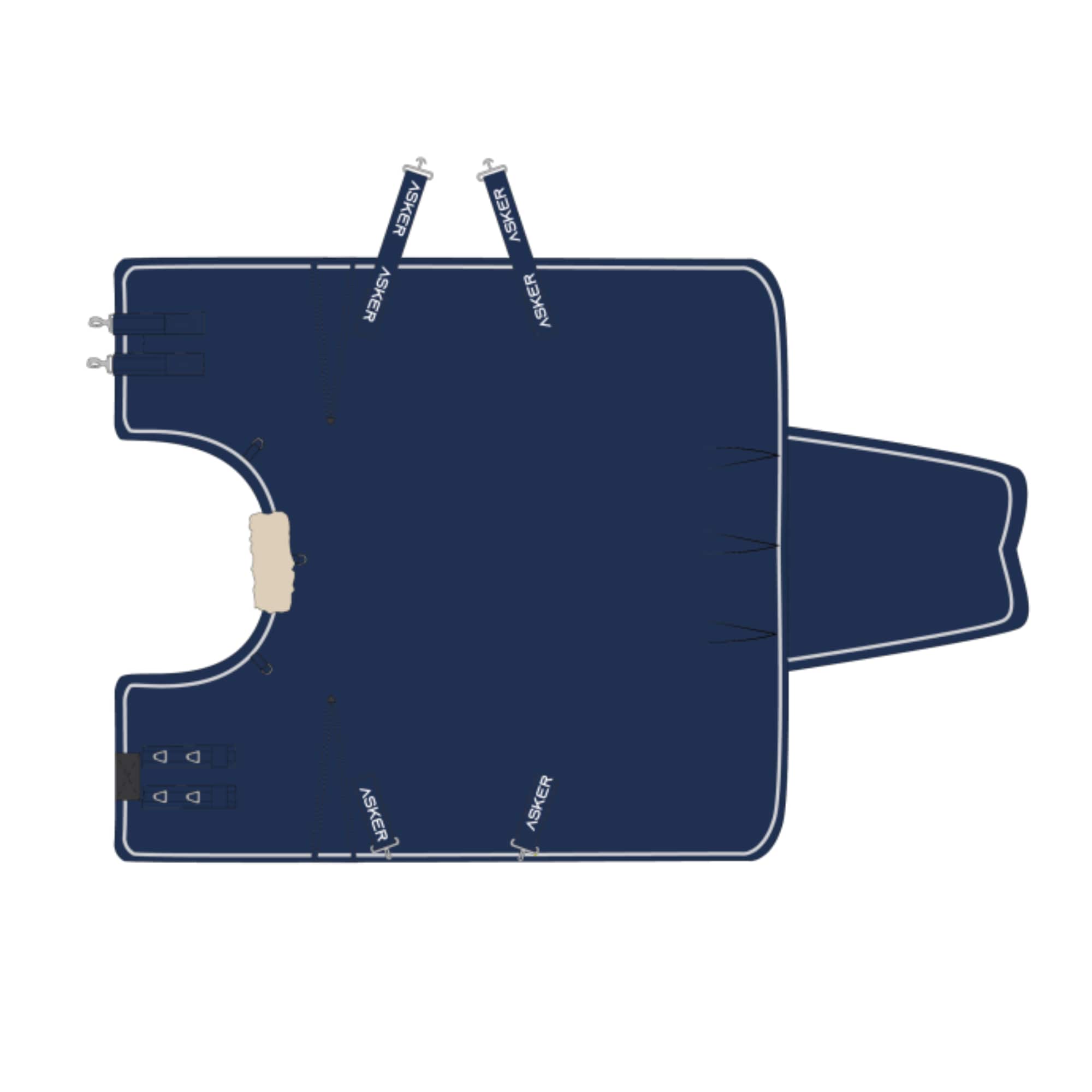 The Asker Turn Out Rug SN – 0g in navy is a functional and long-lasting turnout rug, well-suited for everyday use in various weather conditions. Made from 600 denier fabric, it combines waterproofing of 3000 WP with excellent breathability, ensuring comfort for the horse.