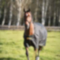 The rug is made from durable 1200 denier Ripstop fabric, making it both strong and resistant to tears. With a waterproof rating of over 5000 mm and breathability of over 3000 g/24h/m², it keeps your horse dry and comfortable in various weather conditions.