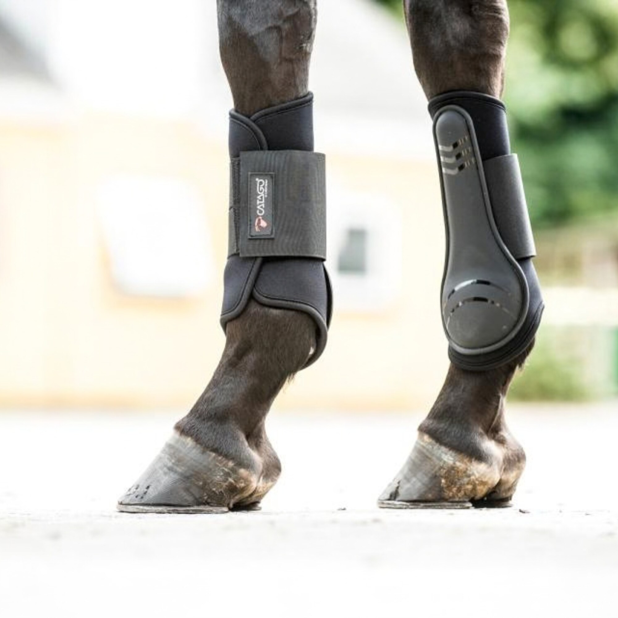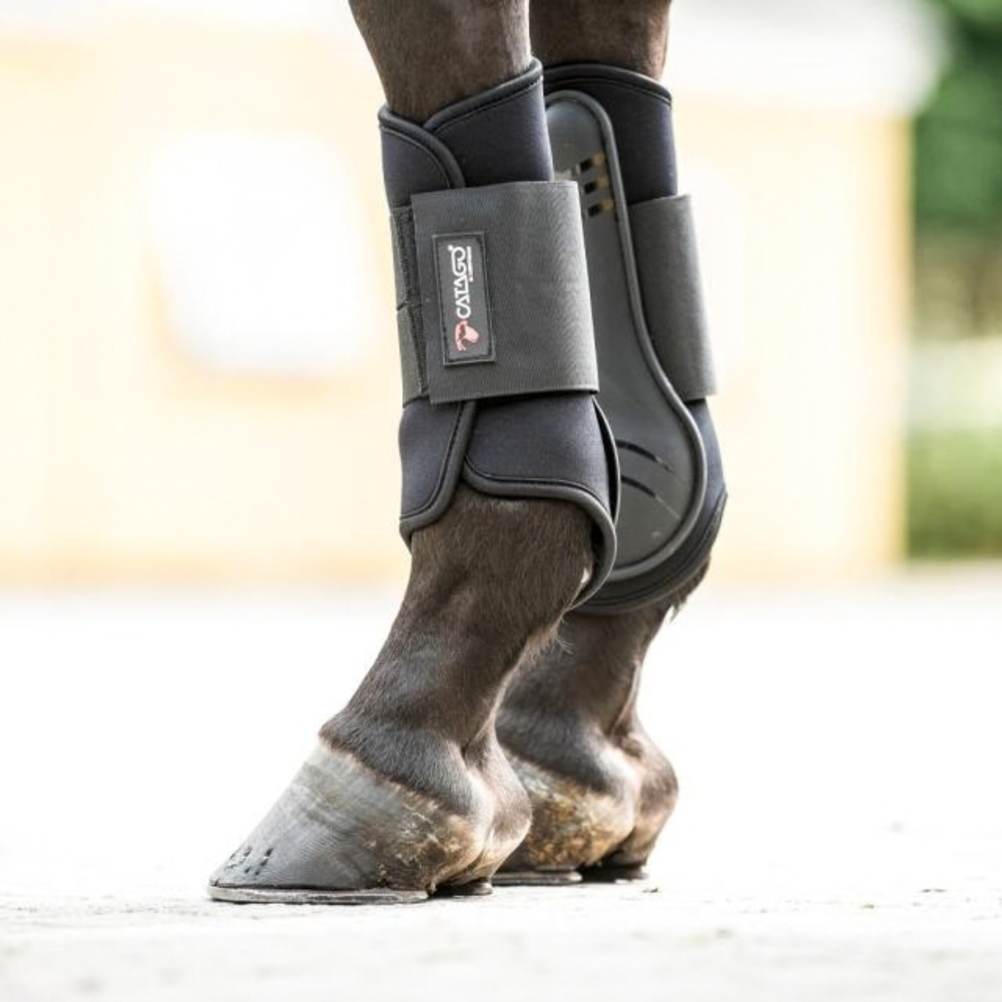 Neoprene brushing boots from Catago with a reinforced inner side and double Velcro straps for a secure fit. Versatile boots suitable for both training and turnout.