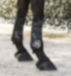 - Shock-absorbing tendon boots with an outer shell in PU with Poron
