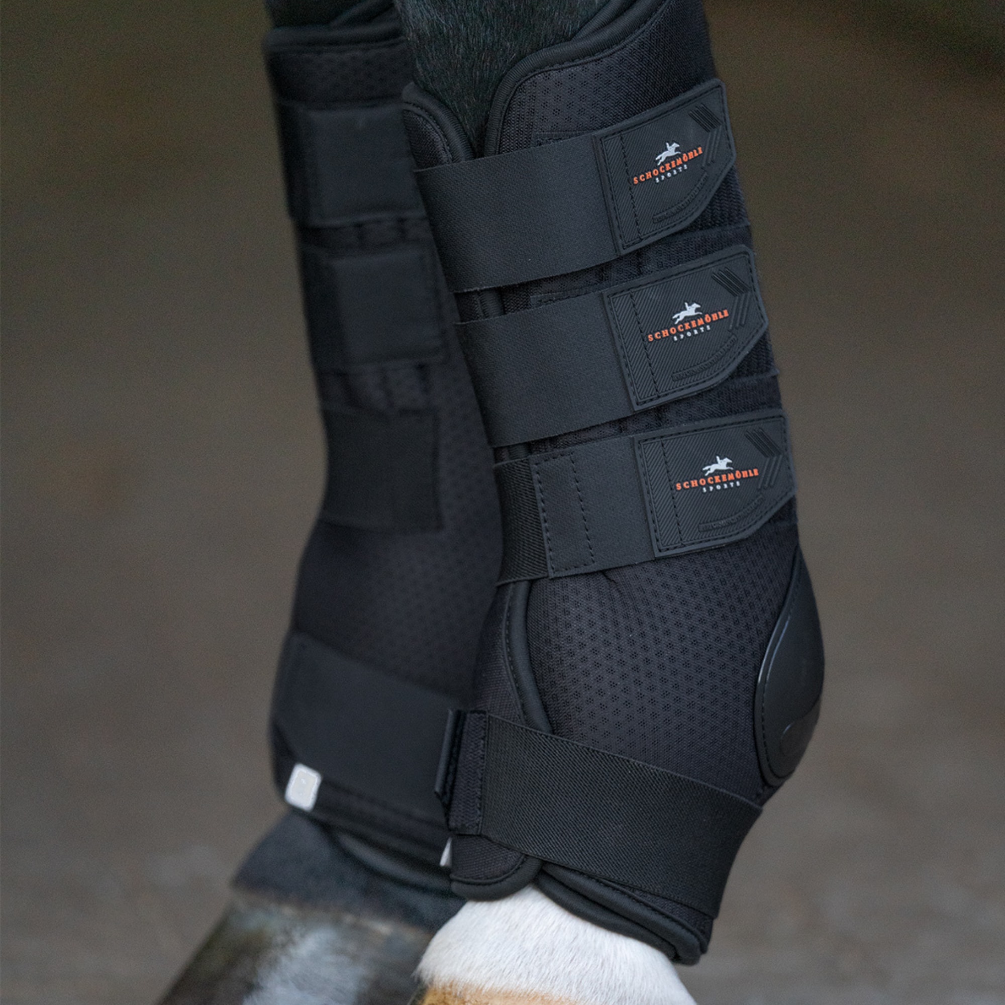Schockemöhle Sports Air Flow Ceramic Stable and Transport Boots are leg boots with ceramic fibers that may promote blood circulation and support the legs’ recovery during rest and transport.