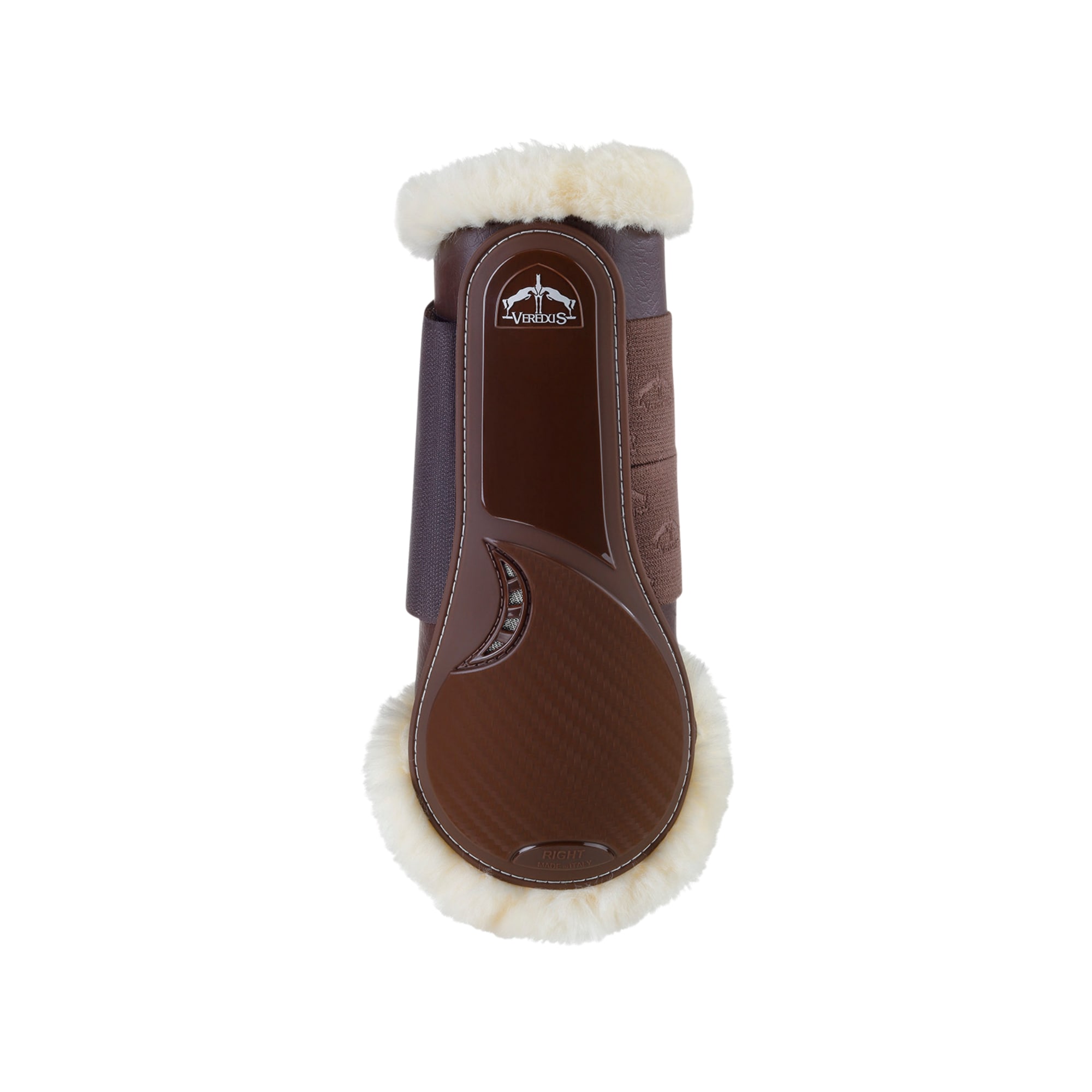 Brown front boots with efficient ventilation and soft Techno Sheepskin lining to prevent rubbing. Ideal for show jumping and flatwork, perfect for sensitive horses.