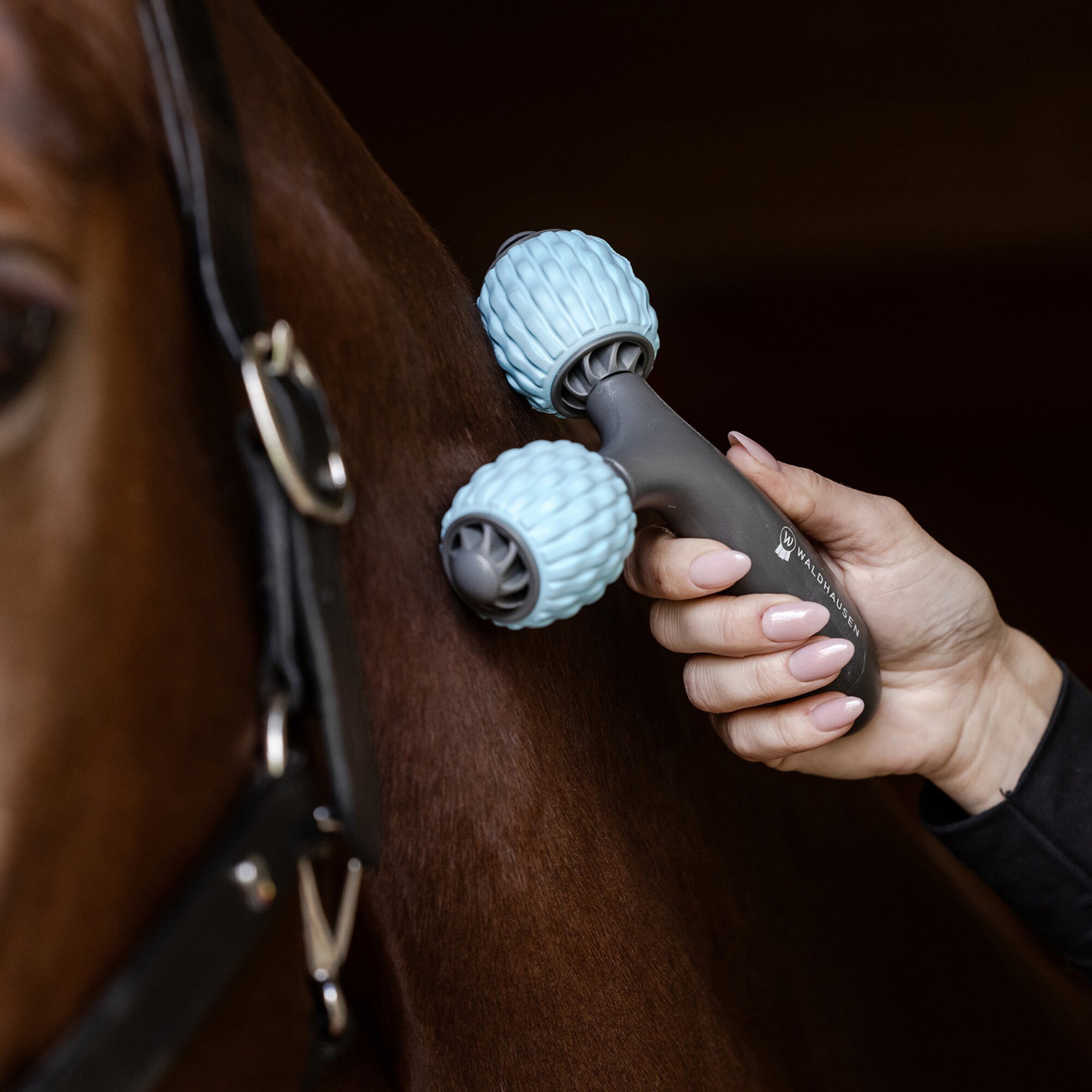 Waldhausen Health & Care massage rollers offer a simple and effective way to give your horse a relaxing massage – completely without electronics. Thanks to the specially structured rollers, selected muscle areas can be worked and tension relieved. The ergonomic handle ensures a comfortable and secure grip, and the rollers are specifically adapted for the horse’s larger, softer muscle groups.
