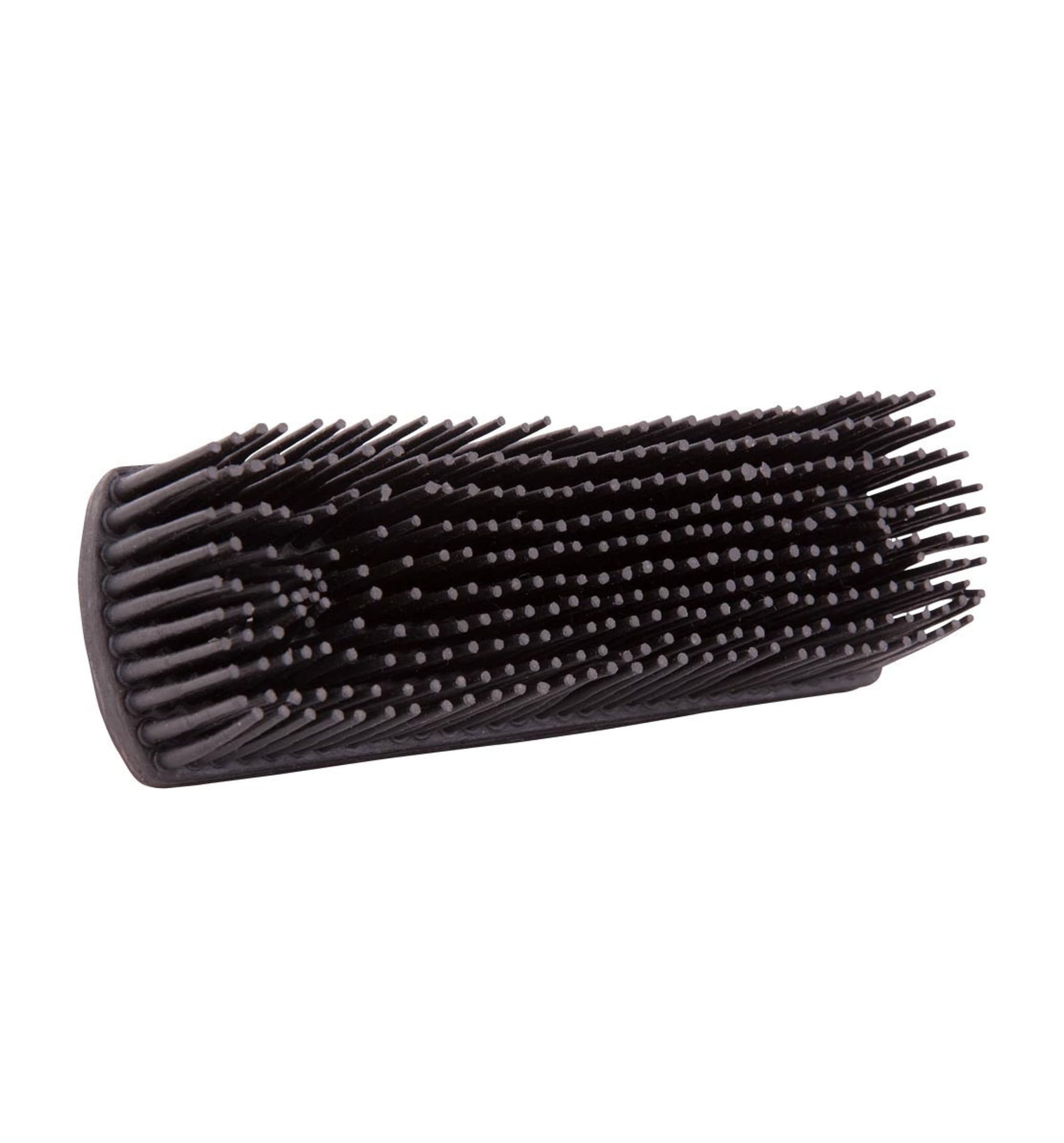 Convenient and effective brush for removing dirt and hair from rugs, blankets, and saddle pads.