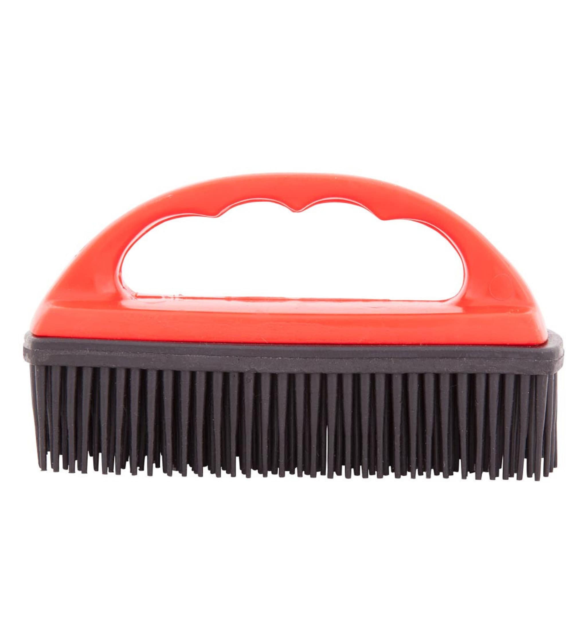 This is a truly multifunctional brush made from 100% natural rubber. It effectively removes horse hair and other dirt from most textiles. The brush features an ergonomic handle for easier brushing. Red handle with black bristles. Made from PAH-free natural rubber.
