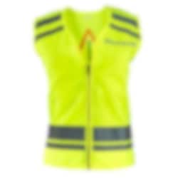 Thin reflective vest that is easy to use outside the usual riding clothes. Yellow