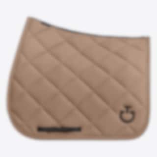 This dressage saddle pad from Cavalleria Toscana is incredibly stylish with large quilted squares. The Diamond Quilted Jersey dressage saddle pad comes in a perfect Walnut colour and features a black CT logo and a black spine channel with the Cavalleria Toscana branding there as well.