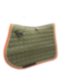 The jumping saddle pad is made of cotton with soft teddy at the withers to prevent chafing. This saddle pad has a nice light olive colour with a rust edging, the passpoal is kitt and light brown.