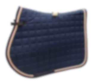 The jumping saddle pad is made of cotton with soft teddy at the withers to prevent chafing. This saddle pad has a nice navy colour, the passpoal is glittery white and pink.