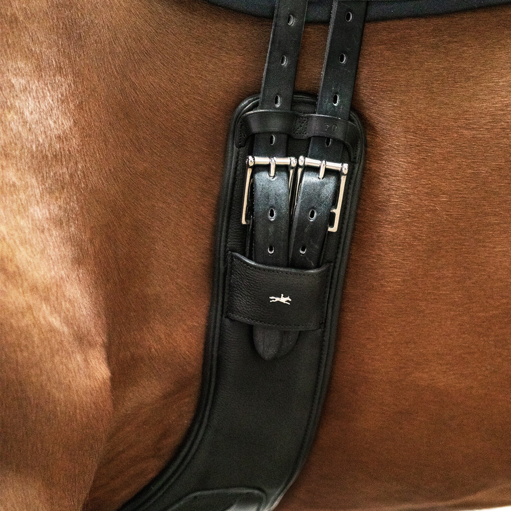 The anatomical shape allows the horse to move freely around the elbows, enhancing comfort during work. A slightly firmer, wider centre panel helps distribute pressure evenly across the ribcage for a stable and comfortable fit.