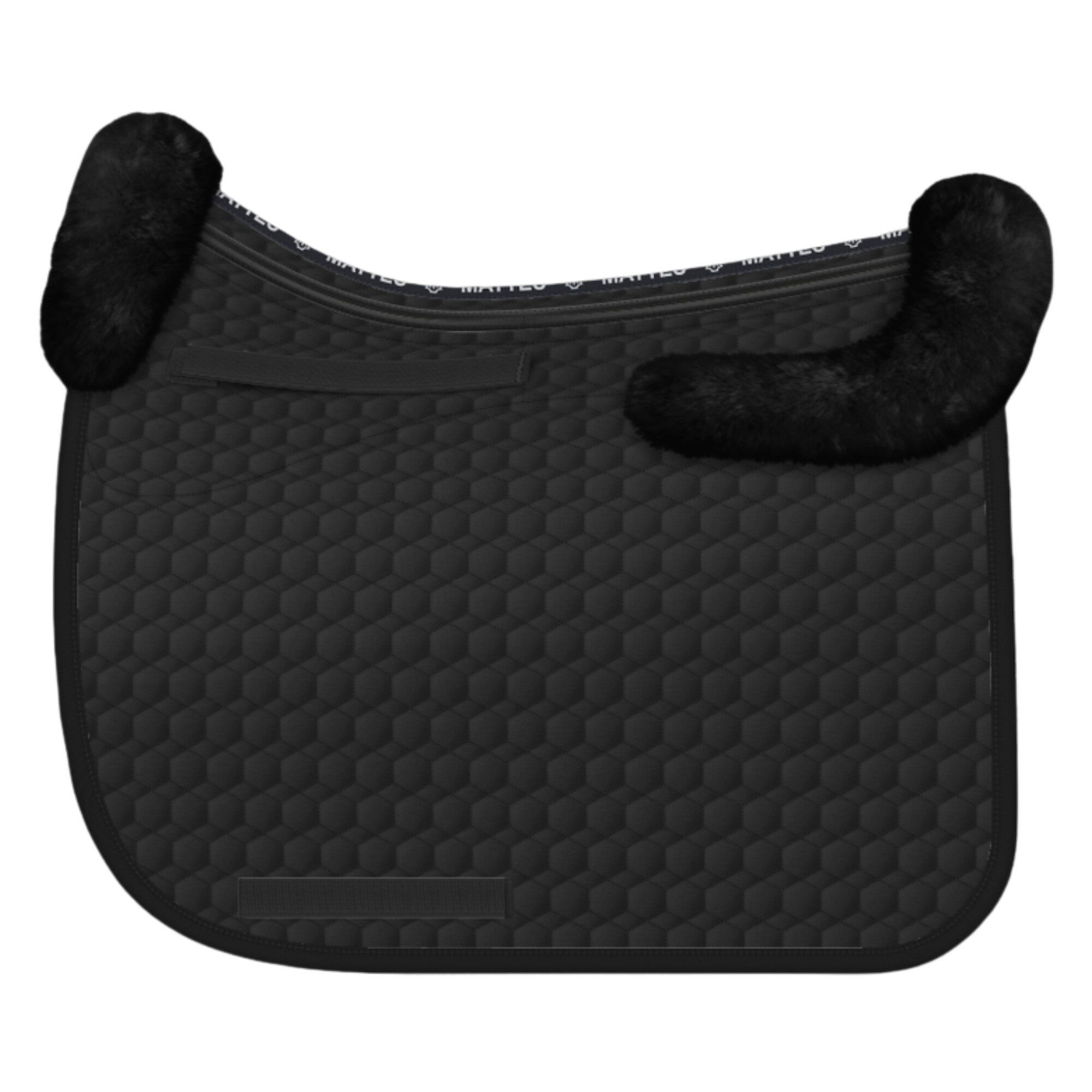 This sheepskin saddle pad is used for pressure relief under the saddle and to prevent and relieve chafing. The sheepskin saddle pad and Mattes saddle pads are absolutely top quality. This dressage saddle pad is made of black cotton with certified black sheepskin in the integrated pad.