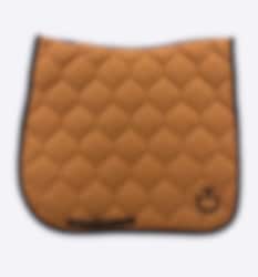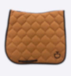 This dressage saddle pad from Cavalleria Toscana is increadibly stylish with their new circular quilted squares. The Circular Quilted Jersey dressage saddle pad is in a golden colour and has a black CT logo, black edge band and a black channel on the back with Cavalleria Toscana branding there as well.
