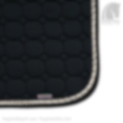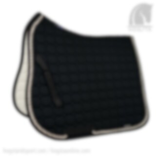 Black saddle pad with black edge band and gold/sand piping is both discreet and elegant at the same time.